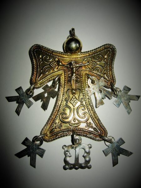 Striglakors Silver och förgyllt silver. Behängd med mariamonogram samt hänge med monogram "IHS". Reliefdekor i form av Jesus på korset. Stämplat LB. Lars Bleckberg, Sölvesborg. 1818-1835.